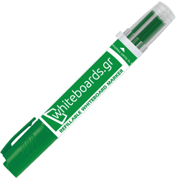 Επαναγεμιζόμενος μαρκαδόρος πίνακα σε πράσινο χρώμα με πλαστικό στέλεχος και στρογγυλή μύτη πάχους γραφής 2-3mm. Καθαρίζει εύκολα απο την επιφάνεια του πίνακα και έχει ουδέτερη οσμή. Έχει σαν βάση την αλκοόλη και αναγομώνεται με μελάνι αλκοόλης. Συμμορφώνεται με Ευρωπαϊκά Πρότυπα EN71 PART 3 / ASTM D-963-08.